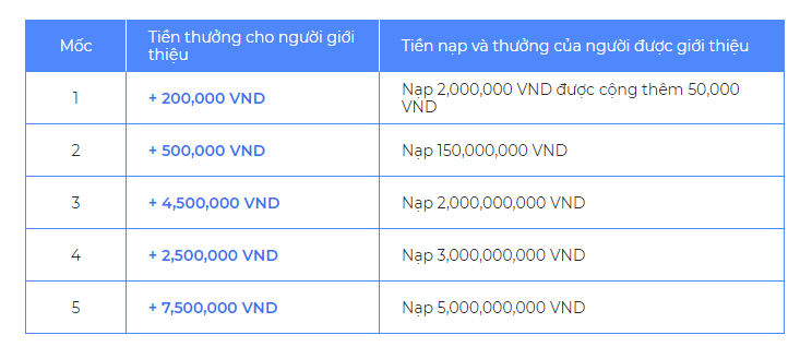 2. Điều kiện nhận thưởng: Tài khoản người giới thiệu phải được xác minh chính chủ, đã phát sinh nạp ít nhất 200.000 VND.